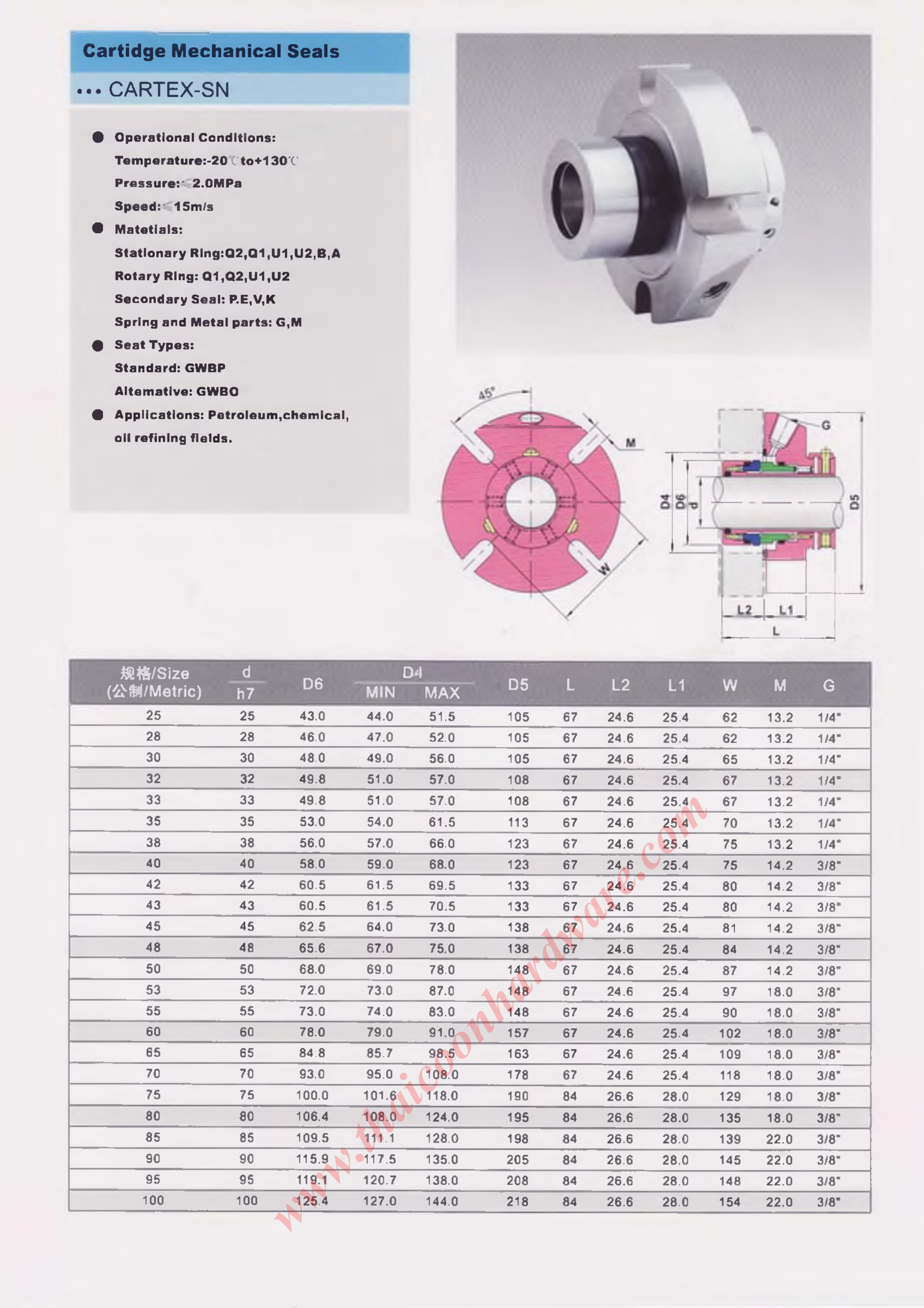 แมคคานิคอลซีล รุ่น cartidge mechanical seals cartex-sn