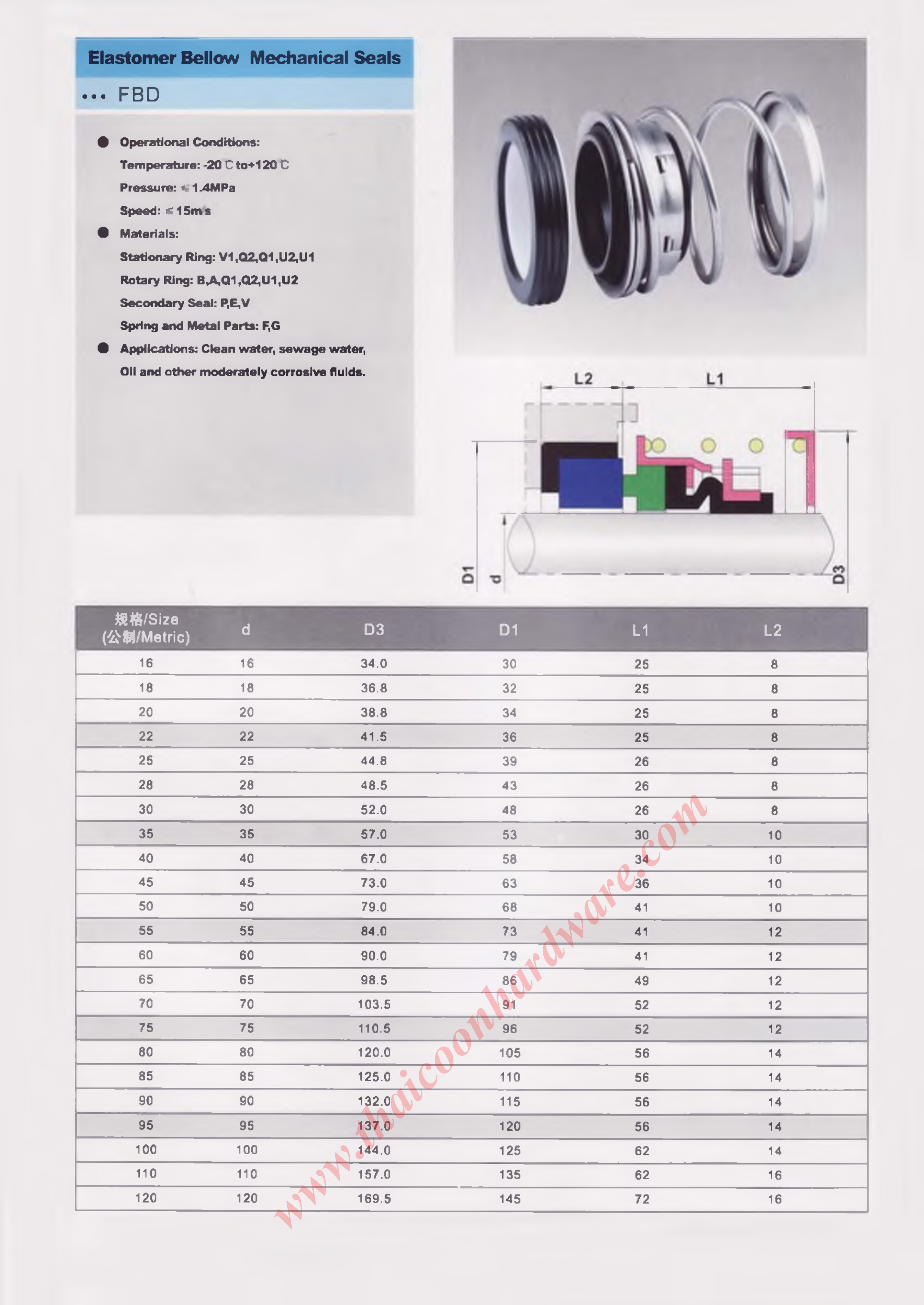 แมคคานิคอลซีล รุ่น elastomer bellow mechanical seals fbd