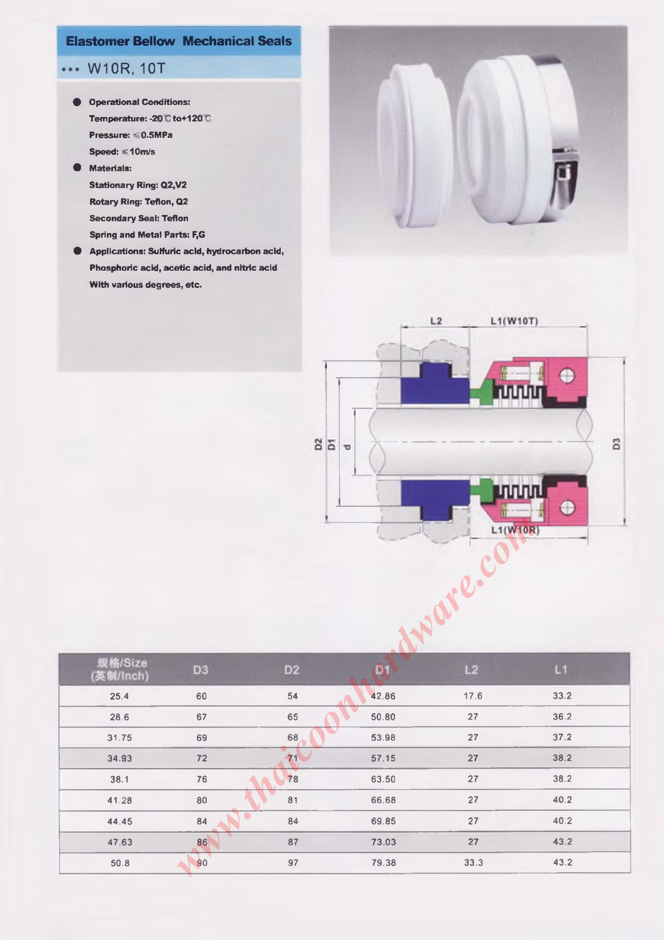 แมคคานิคอลซีล รุ่น elastomer bellow mechanical seals w10r, 10t
