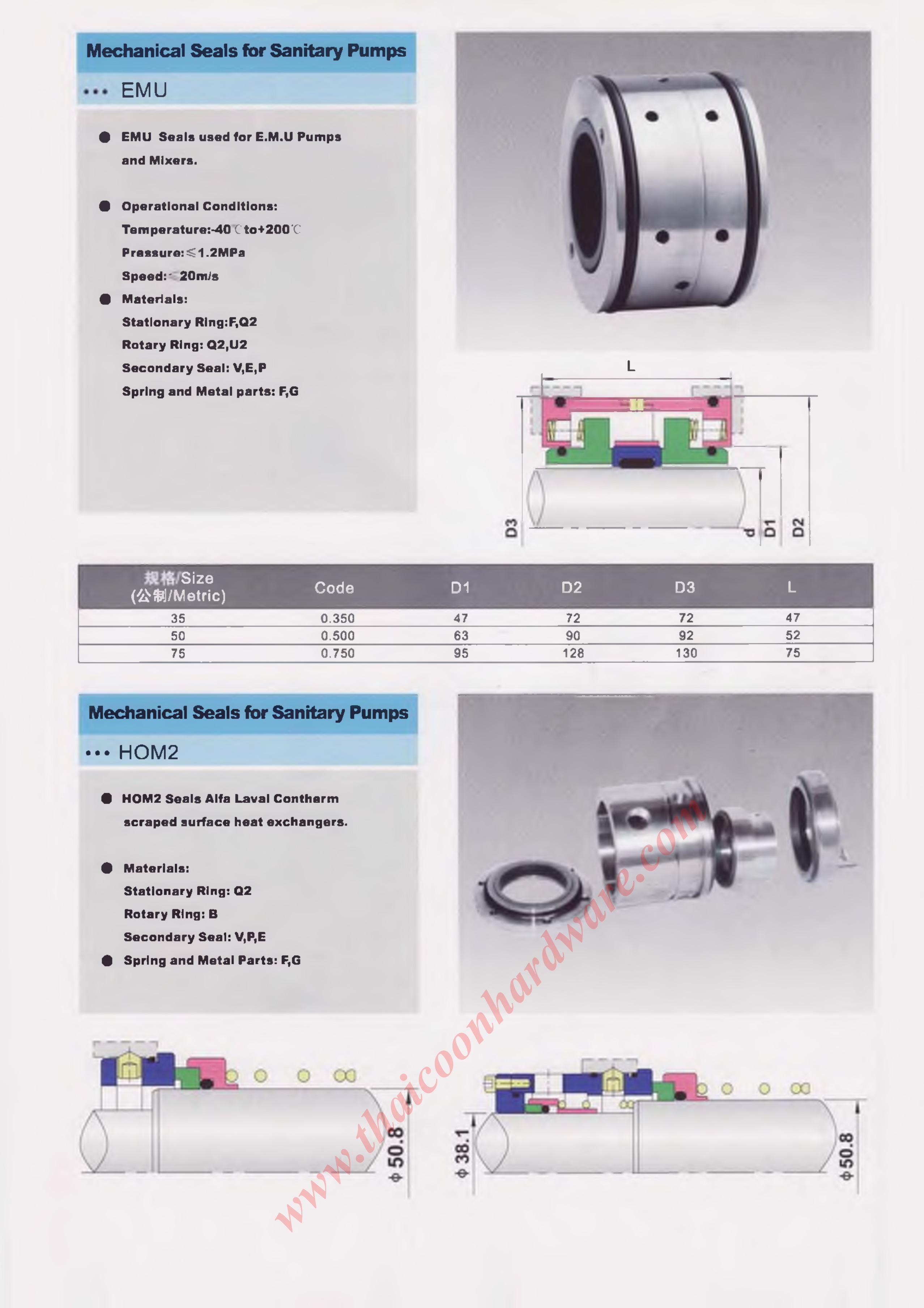 แมคคานิคอลซีล รุ่น mechanical seals for sanitary pumps emu hom2