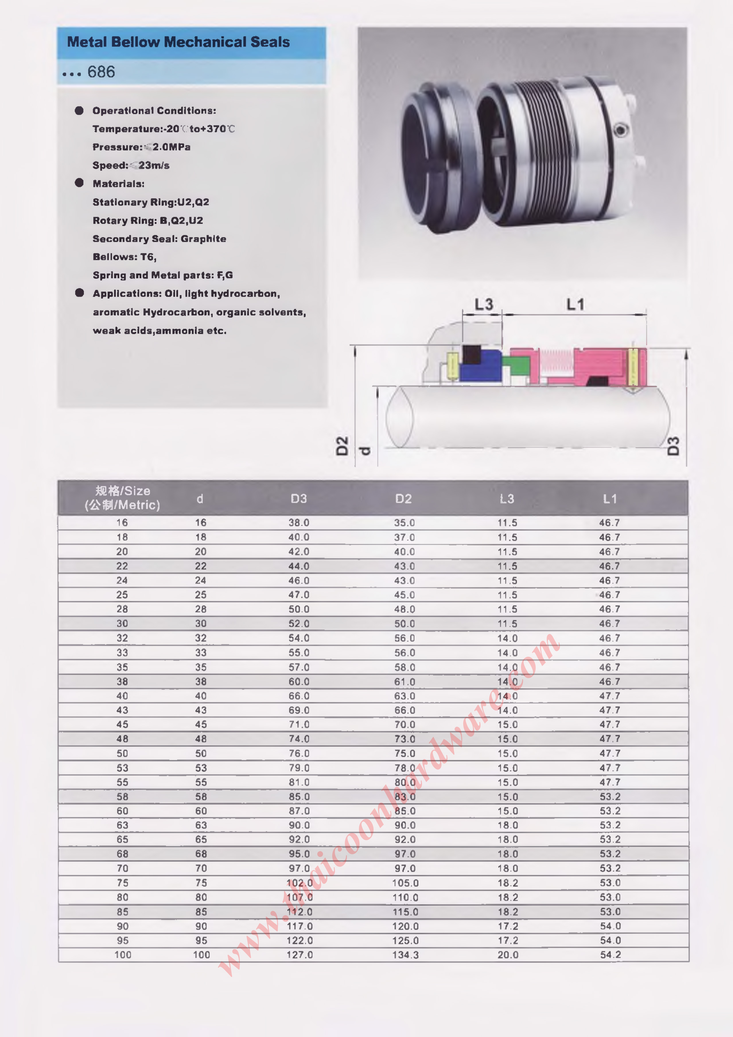 แมคคานิคอลซีล รุ่น metal bellow mechanical seals 686
