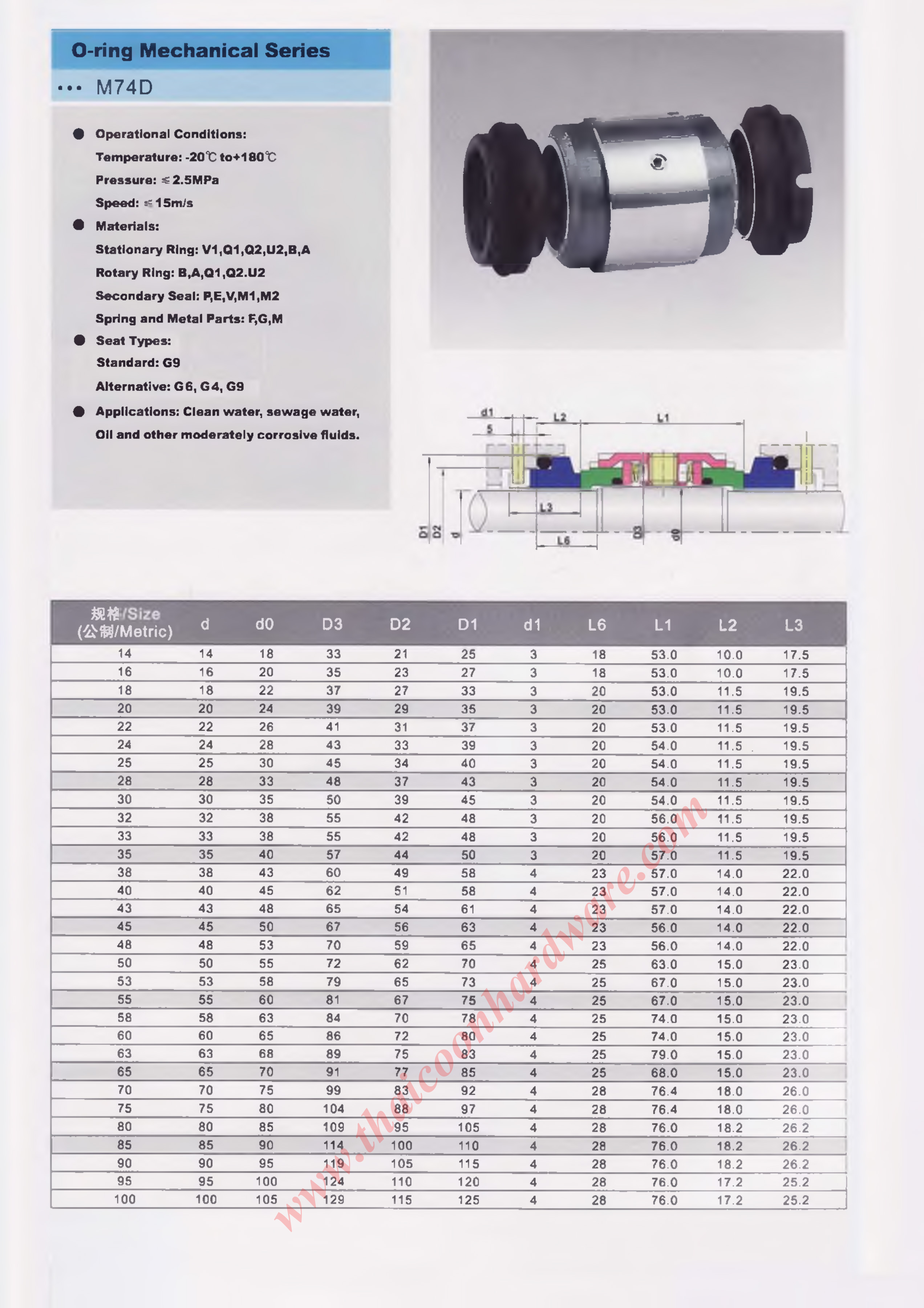 แมคคานิคอลซีล รุ่น o-ring mechanical seals m74d