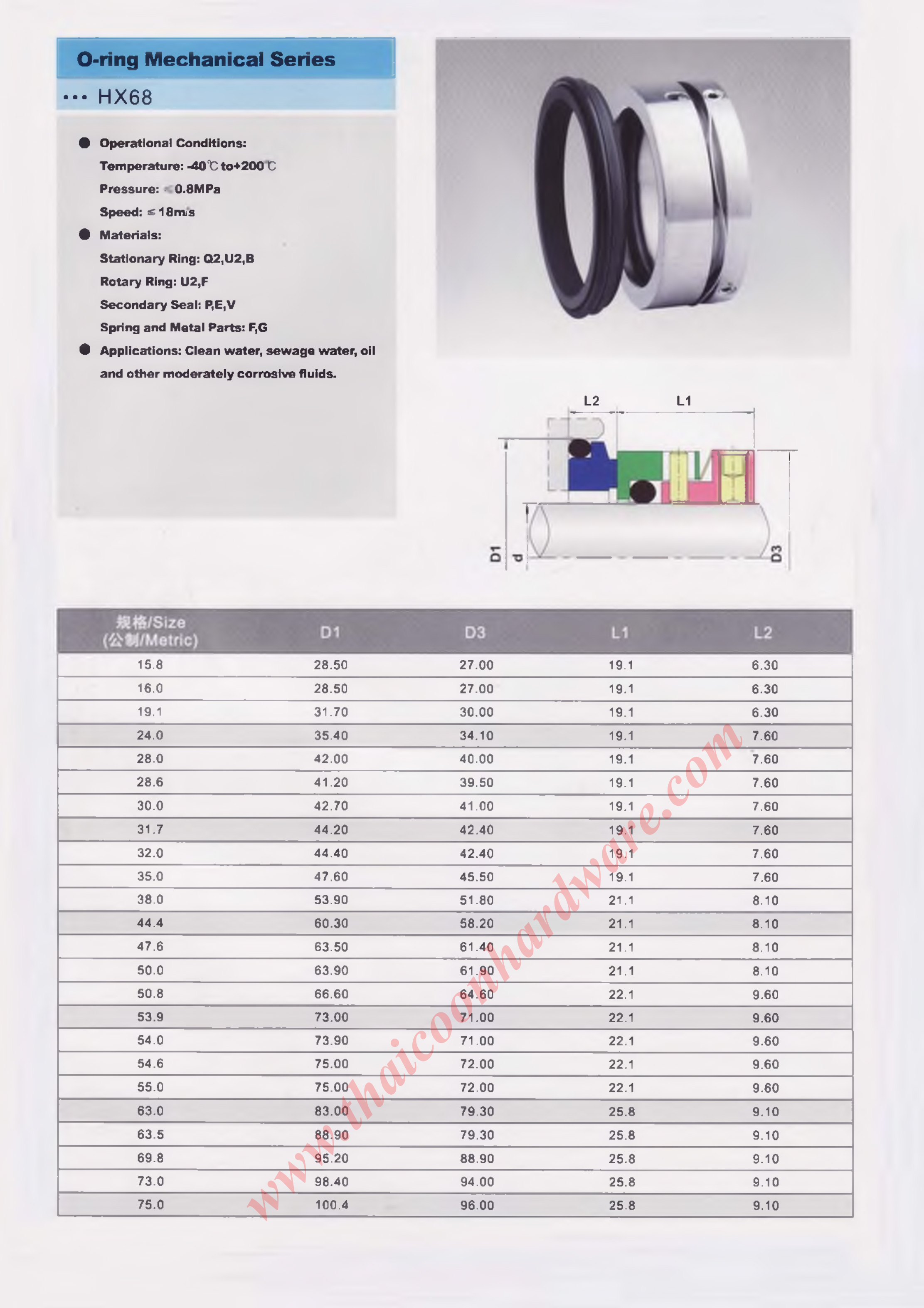 แมคคานิคอลซีล รุ่น o-ring mechanical series hx68