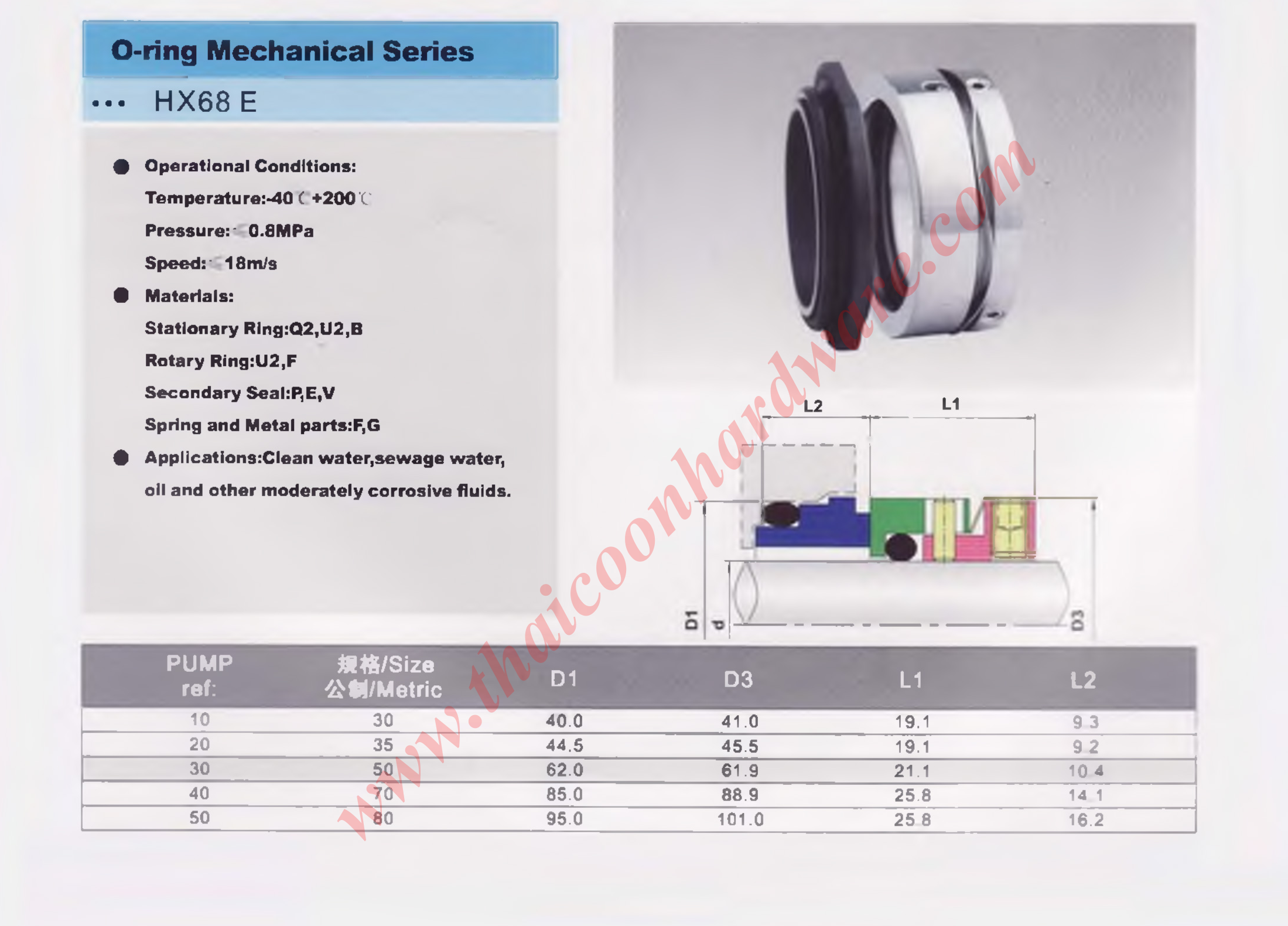 แมคคานิคอลซีล รุ่น o-ring mechanical series hx68e