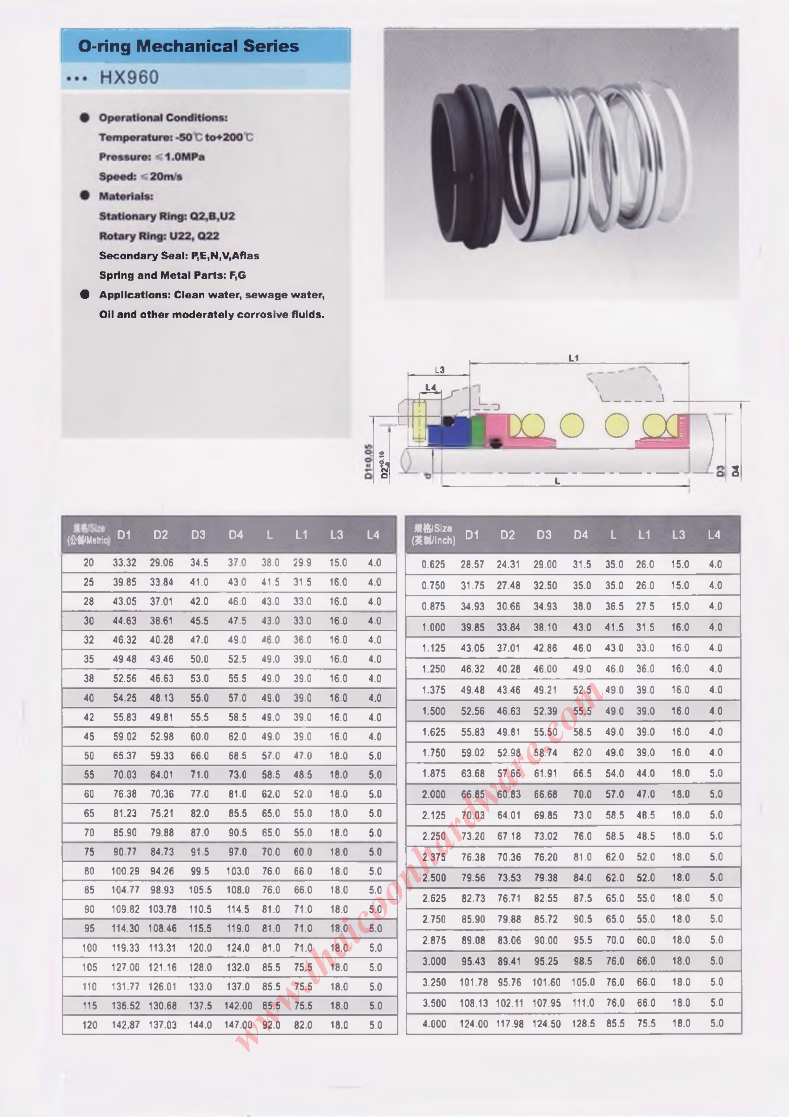 แมคคานิคอลซีล รุ่น o-ring mechanical series hx960