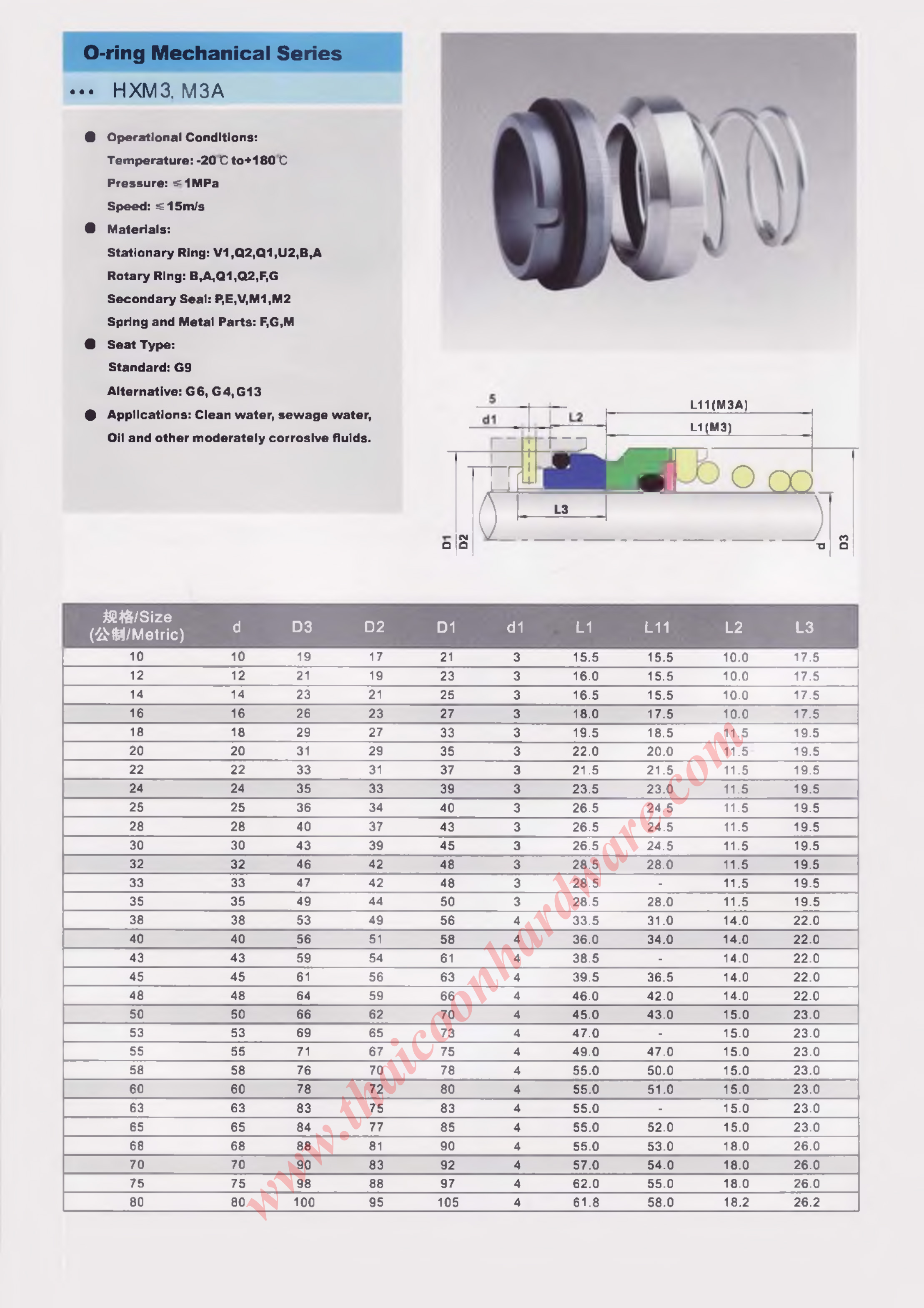 แมคคานิคอลซีล รุ่น o-ring mechanical series hxm3, m3a